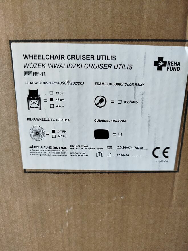 Sprzedam nowy wózek inwalidzki Cruiser Utilis RF-11Odbiór osobisty